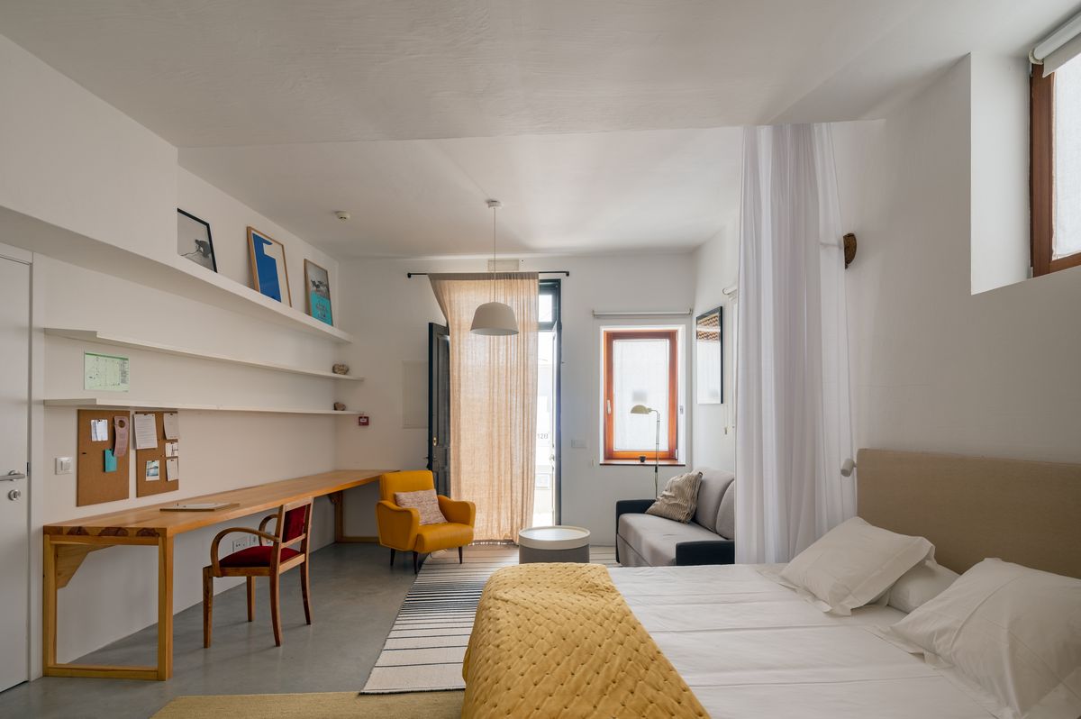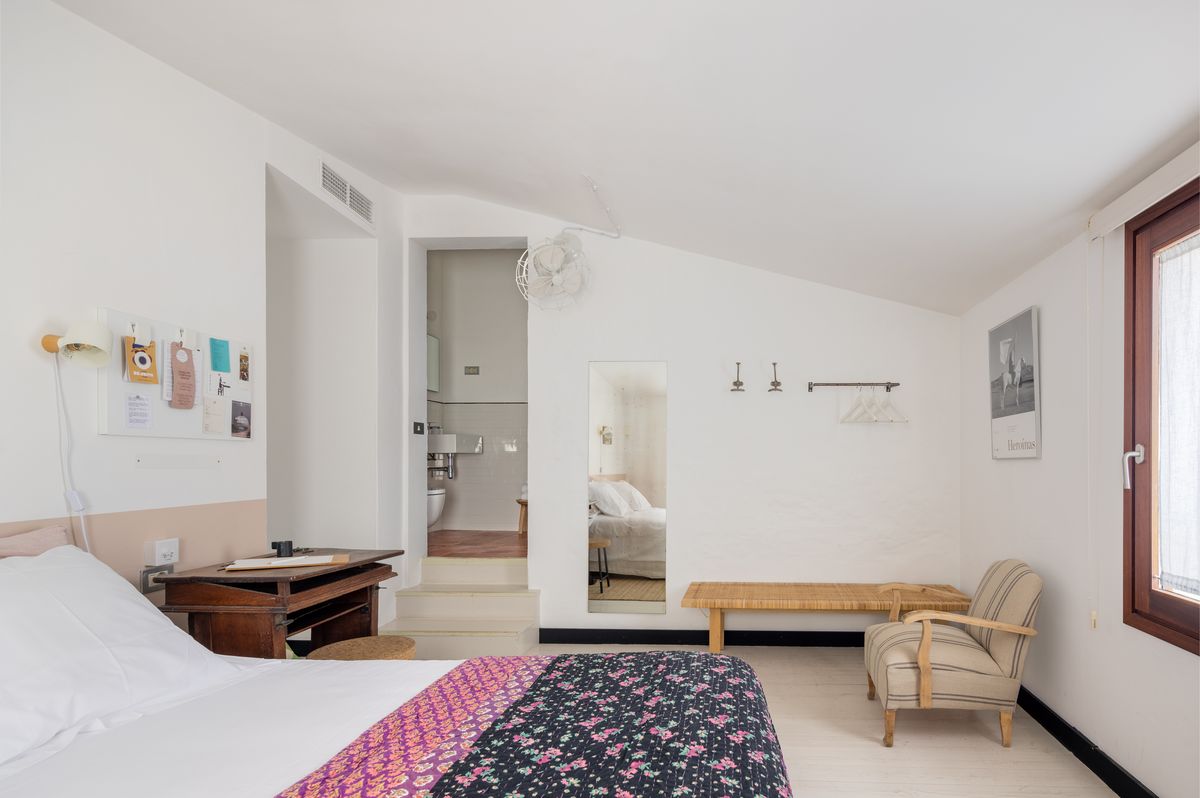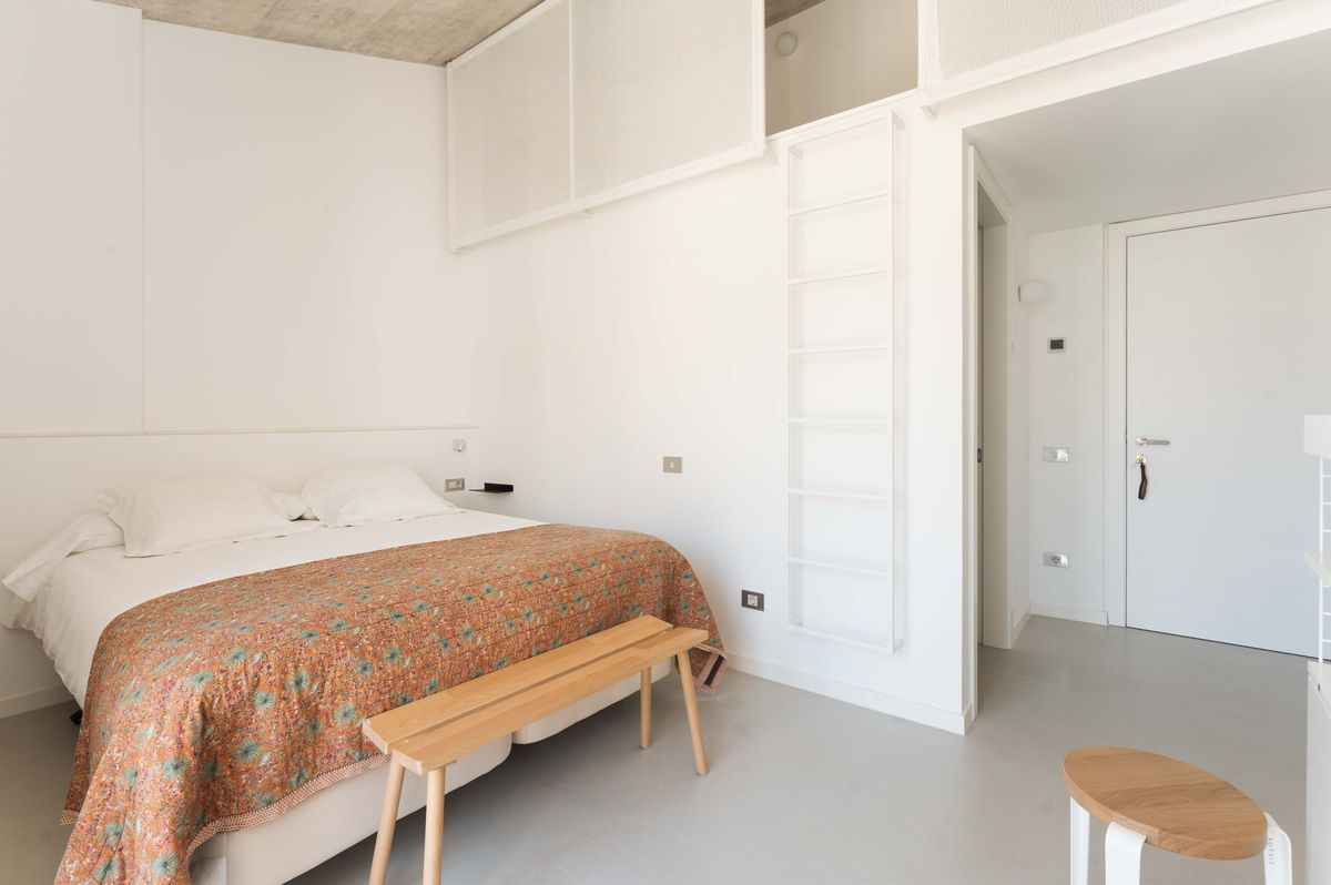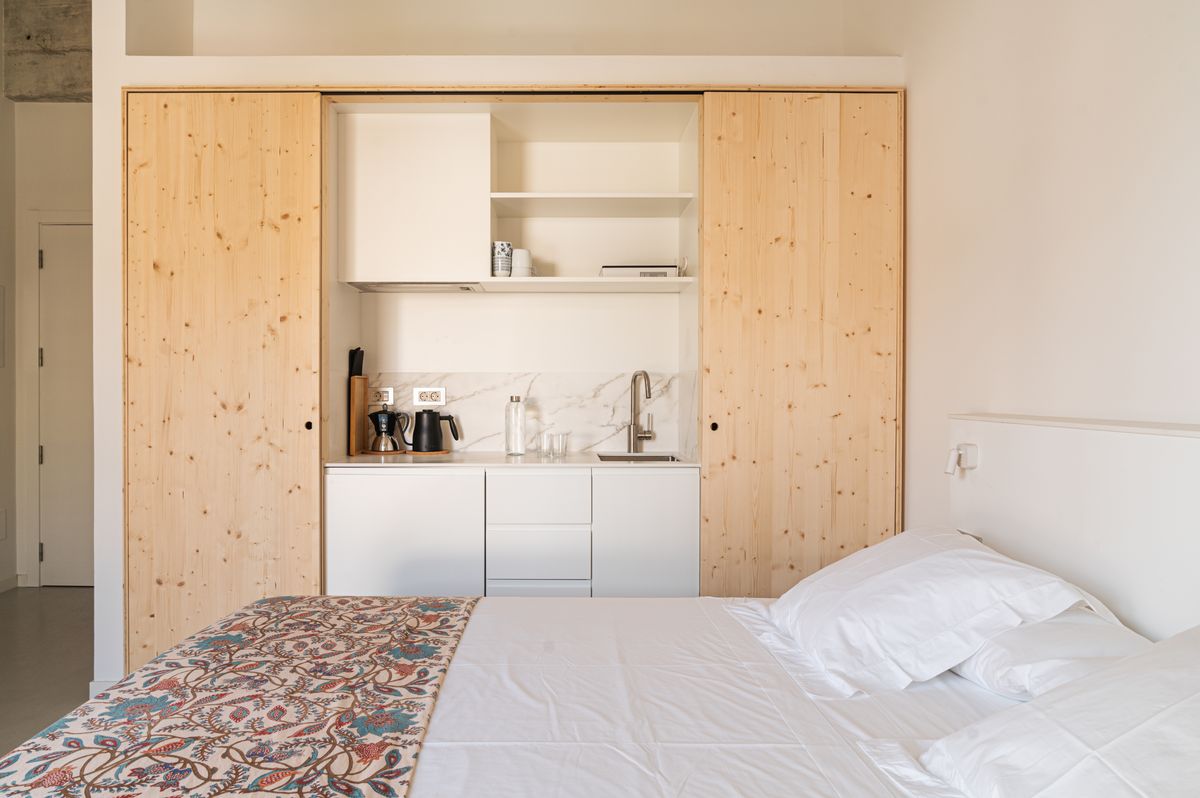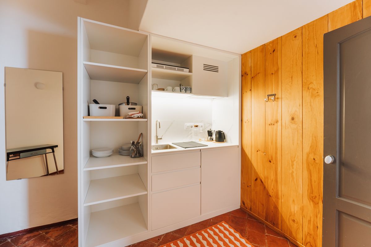 In both pocket apartments you will find a small kitchenette, simple but well equipped (induction hob, fridge, sink and extractor fan), a 180x200cm bed and a very comfortable sofa bed 175x195cm that can accommodate a total of 4 people, including two people up to 17 years old.