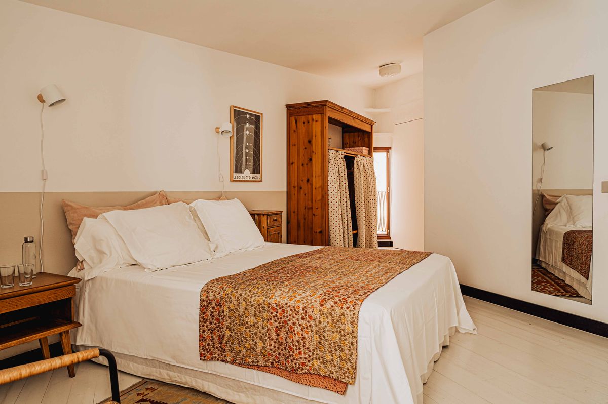 - Two familiar double rooms: nº33 and 34 are located in the new building and measure between 22 and 28m2 with a mezzanine. Bedroom 33 has a king size bed 180x200 and bedroom 34 has a queen size bed 160x200. The mezzanines with two single beds (90x190cm) in each room can accommodate a total of 4 people including 2 persons up to 17 years old.
