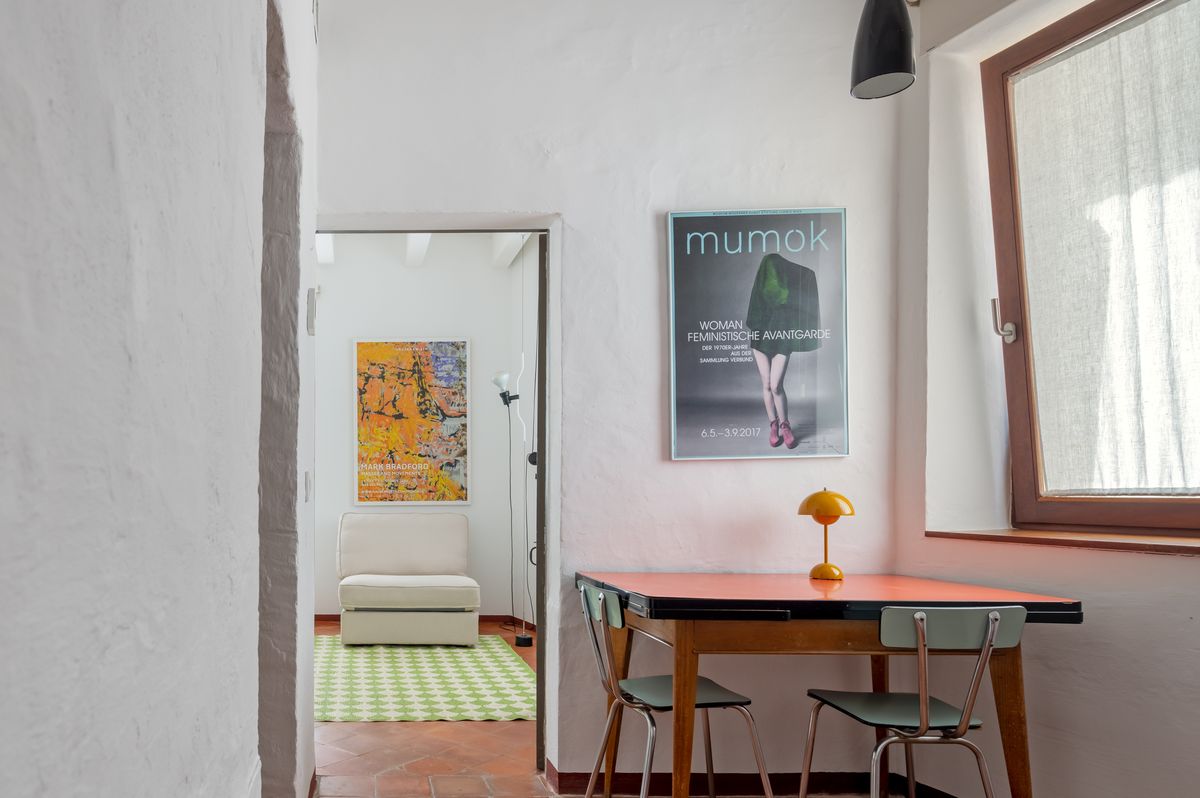 The pocket apartment nº13 (two rooms pocket apartment) is located on the first floor of the original building (no lift). It is a generous space with 2 rooms (master bedroom, living room with a sofa-bed 175x195cm + bathroom and small kitchen).